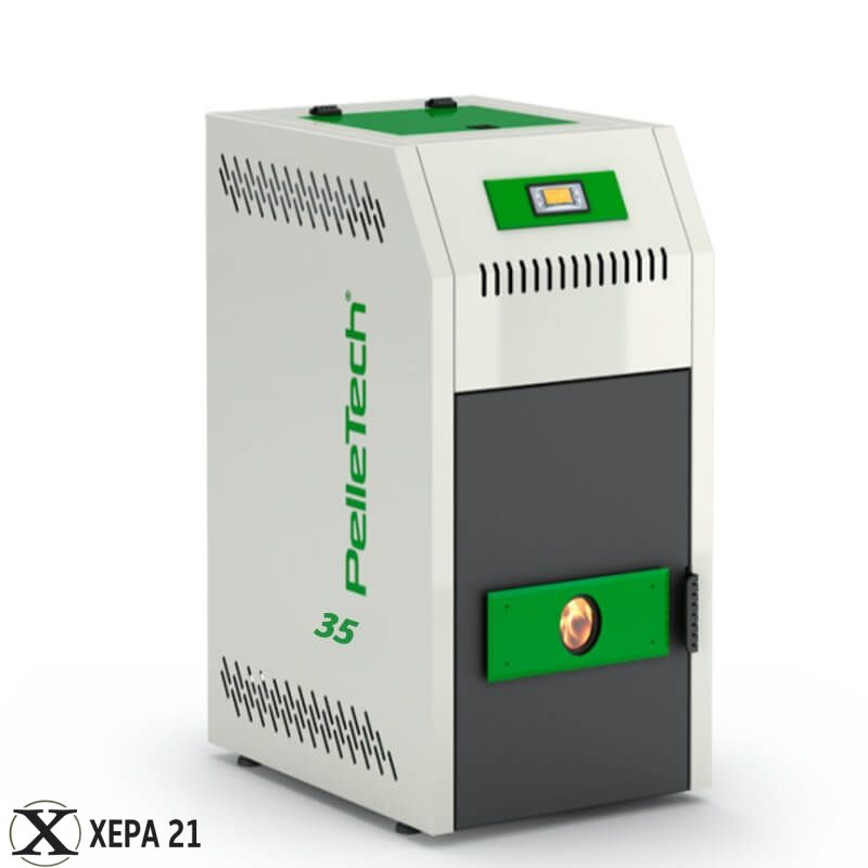Xera21 представя Пелетен котел PELLETECH 35 – икономично и високоефективно решение за централно отопление на вашия дом или офис. С номинална мощност от 35 kW и изключително високо КПД от 92%, този котел е проектиран да осигури надеждна топлина за обеми до 750 m³.