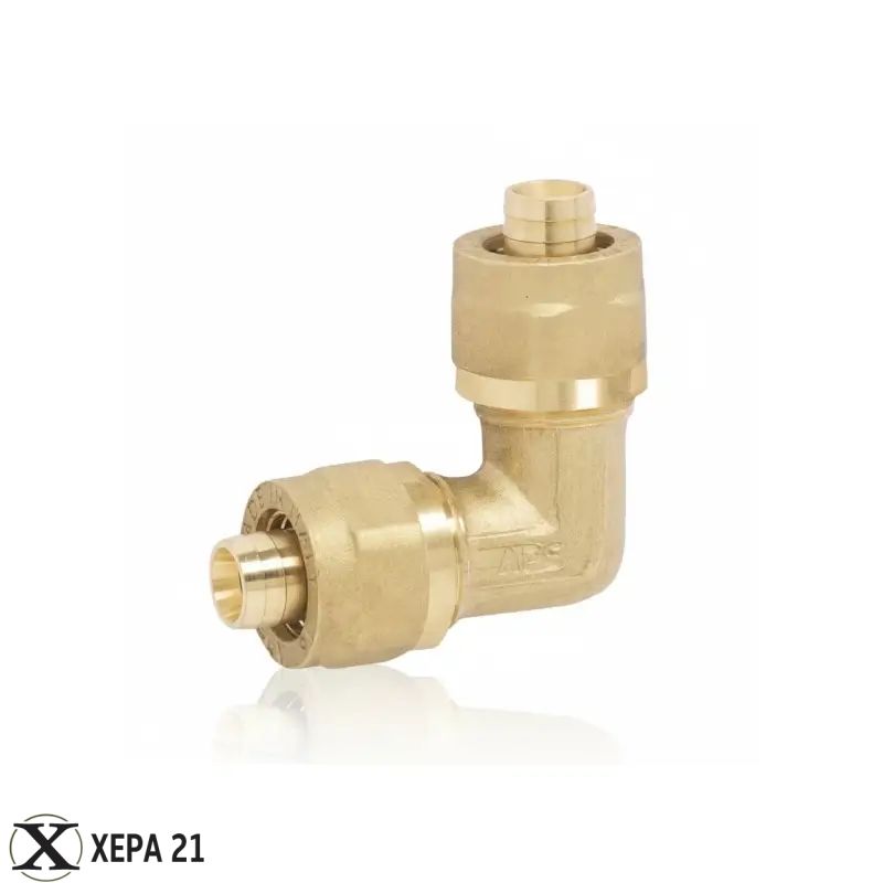 Двойното коляно APE е изработено от месинг, което го прави устойчиво на корозия и износване. Гамата включва различни размери от ф16 до ф32, което позволява избор според нуждите на инсталацията.